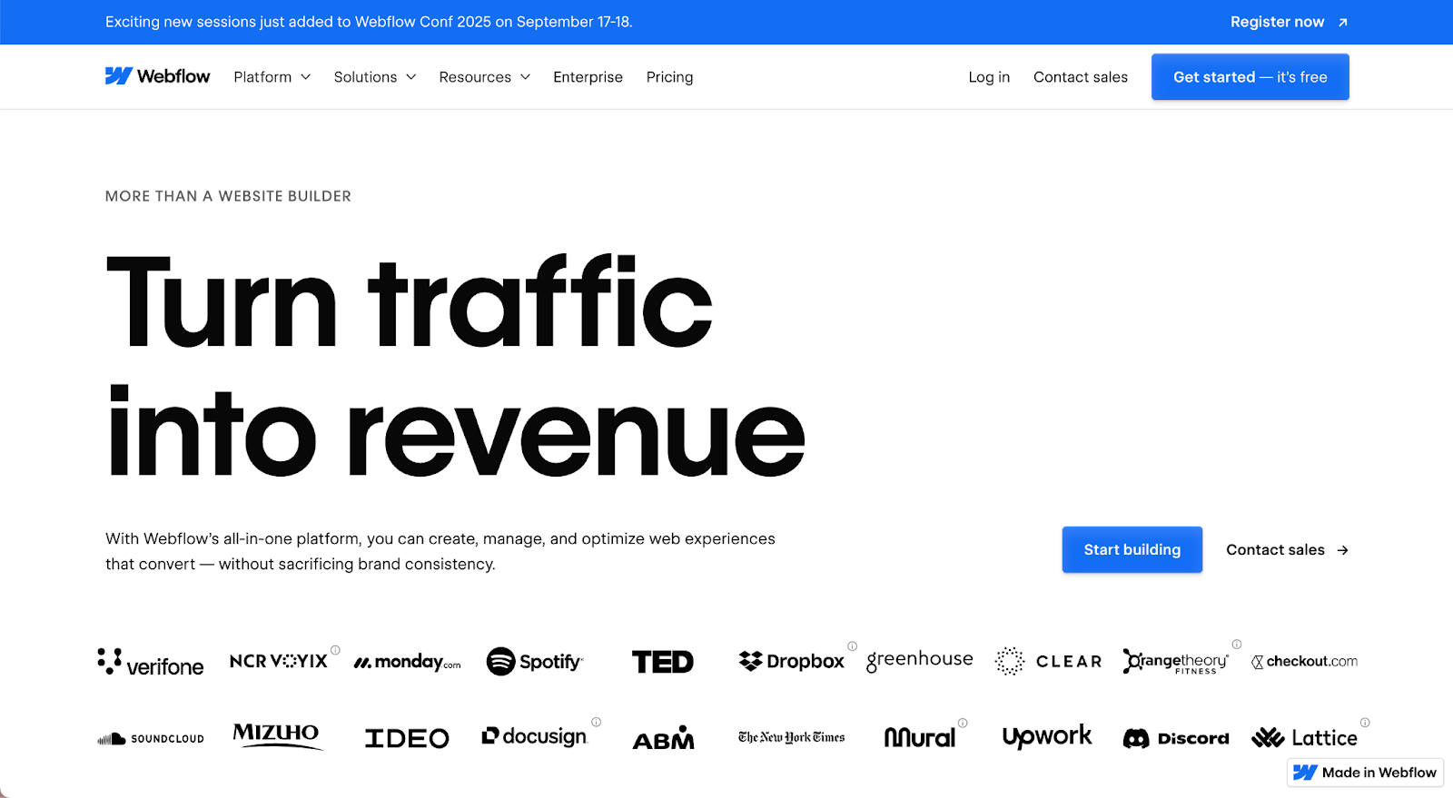 Pricing: Webflow offers a free plan that allows you to learn the tool. Paid plans start at $14/month to connect a custom domain.