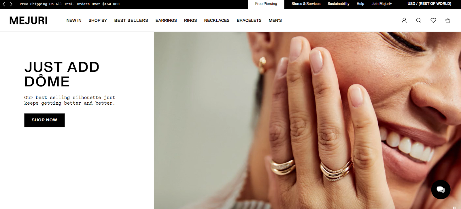 Mejuri’s website is a perfect reflection of its brand ethos: fine jewelry for every day. The design is elegant and understated, allowing the products to shine.
