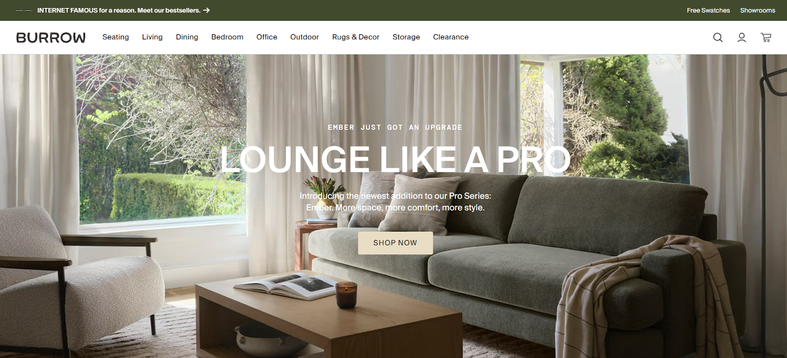 Burrow designs modular furniture that is easy to move and assemble. Their website mirrors this convenience with an exceptionally user-friendly interface that simplifies the process of buying a couch online.