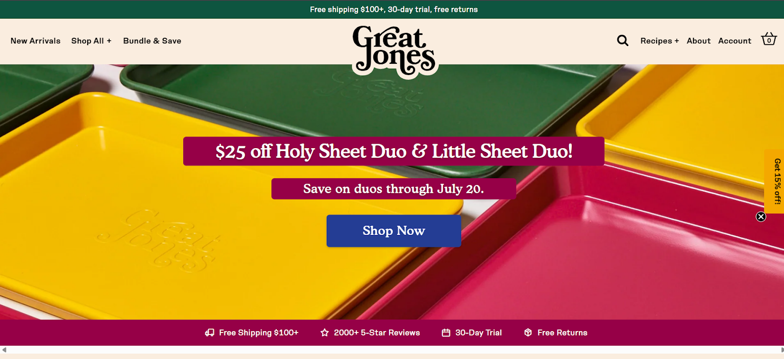 Great Jones, a direct-to-consumer brand of cookware, uses a vibrant color palette and playful typography to create a memorable and engaging user experience. The website feels less like a traditional online store and more like an invitation to a dinner party.