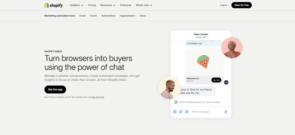 Shopify Inbox is a free messaging application that enables merchants to engage in live chat conversations with customers as they browse their online store. The tool is designed to help reduce friction in the buying process by allowing merchants to answer shopper questions in real time. It provides valuable context—such as the products a customer has viewed or what’s in their cart—which allows for personalized support, targeted product recommendations, and timely discount offers to encourage purchases.