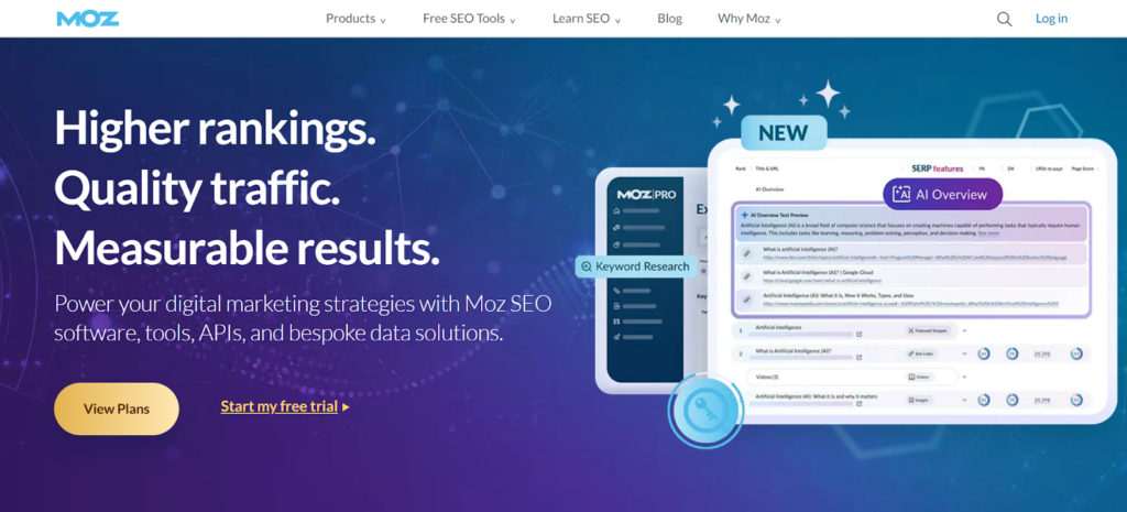 • Includes keyword research tools like Keyword Explorer.
