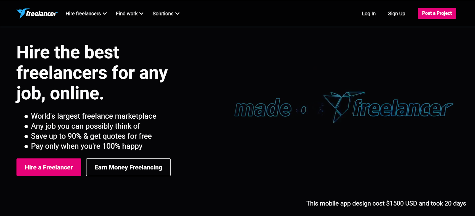 Freelancer.com is one of the oldest freelance marketplaces and boasts a massive user base of both clients and freelancers. It offers traditional projects but is particularly famous for its contest-based model.