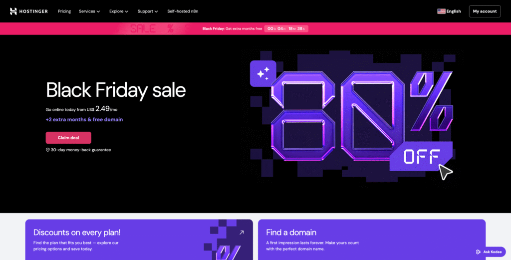 For a new business owner launching their first store, Hostinger provides an incredible on-ramp. You get managed features, fast servers, and a free domain, all for an extremely low introductory price.