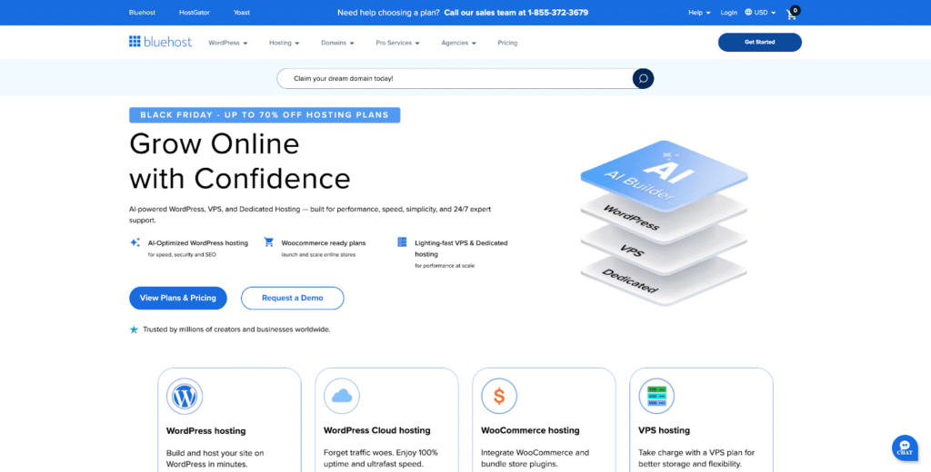 Bluehost is one of the most well-known names in web hosting and another provider officially recommended by WordPress.org. They are particularly good for beginners because their entire experience is built to make launching a WordPress site as simple as possible.