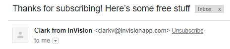 Here’s a subject line example that works wonders and sets the relationship off on the right foot. Thanking your new subscriber for joining, and telling them they’re getting some free things. Just make sure you follow up on the statement by actually giving them something of value for free.