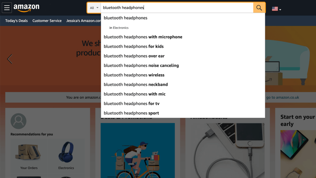 For ecommerce searches, Amazon is just as popular as Google. You can learn from the best by examining Amazon’s keyword strategies. Head over to Amazon and enter keywords that describe your products. Amazon will then make suggestions based on each phrase: