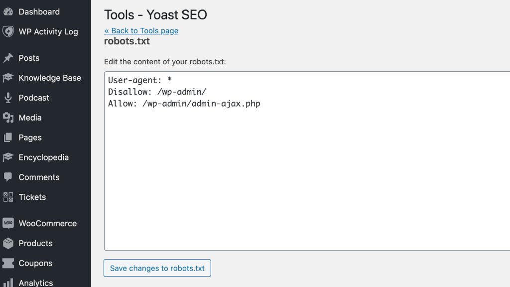 Yoast SEO will display your robots.txt file, and you can edit it or upload an alternative file as needed.
