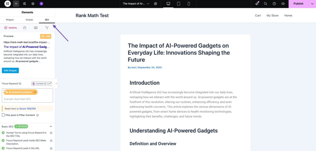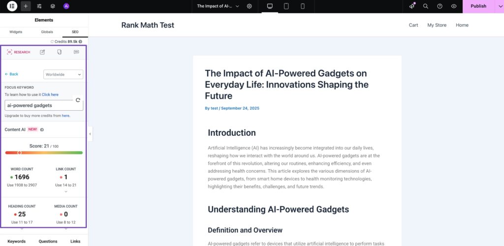 In this guide, we’ll discuss how Rank Math’s Content AI works inside Elementor and how you can use it to make your content stand out in search results.