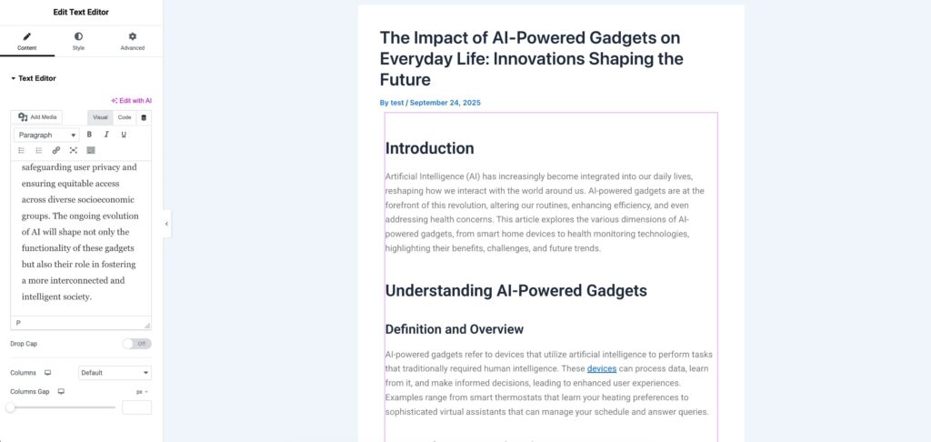 How to Use Content AI in Elementor