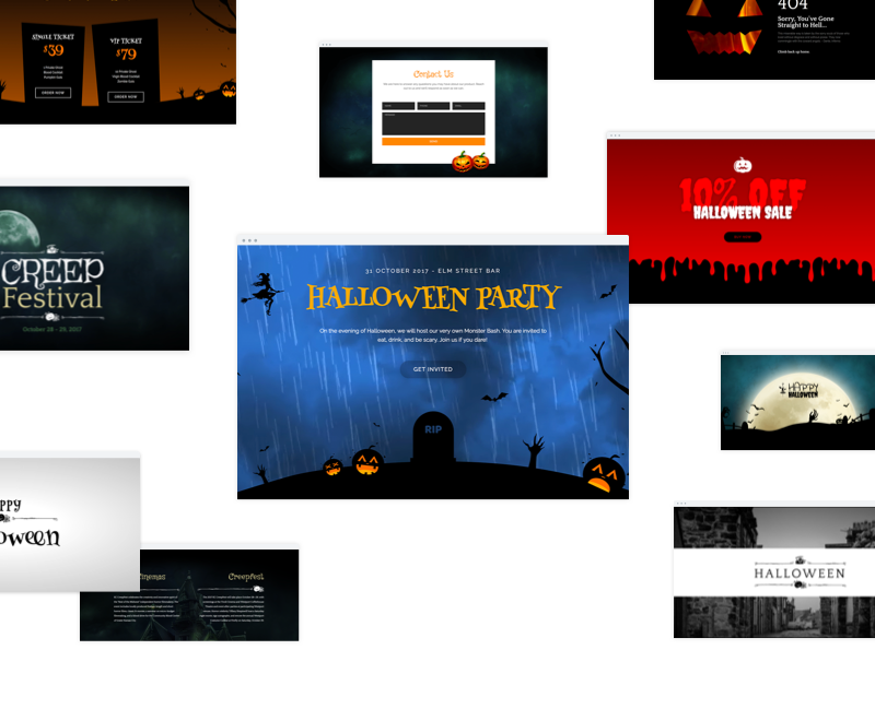 Pro users can get the complete Halloween templates from our Halloween tutorial post: The Haunted Homepage Hero Header, The Killer Feature Services Section, The Bloody Dreadful CTA Section, The Starving Zombie Menu Page, The Contact The Dead Form, The Price Slasher Pricing Page and the Straight from Hell 404 Page.