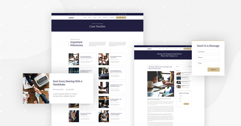 While this template is aptly named the Law Firm Template Kit, it was designed for any and all businesses that require a high-quality, professional-looking website. It is very versatile and is applicable to anyone who deals in law, accountancy, consultancy, or similar professions.