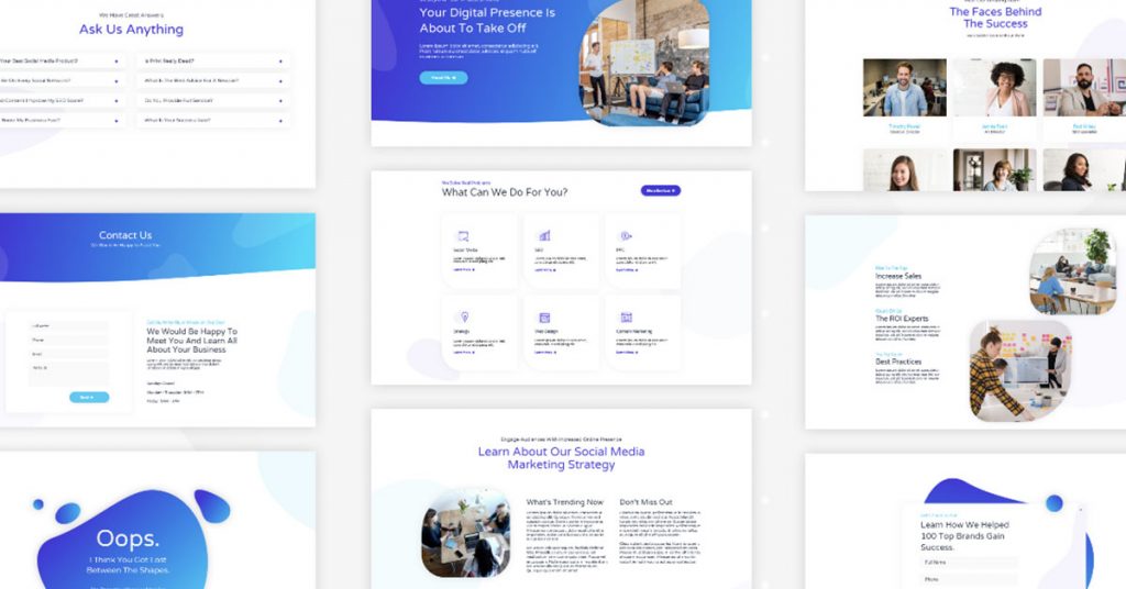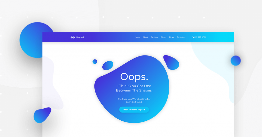 Elementor makes it easy to set up 404 pages with a simple click. We created a 404 template that follows the same shape design as the rest of the website.