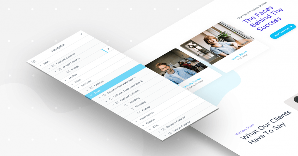 Navigator naming. We named each and every layer in the Navigator, so you can easily pinpoint and pick out every element on the page, and know what does what.