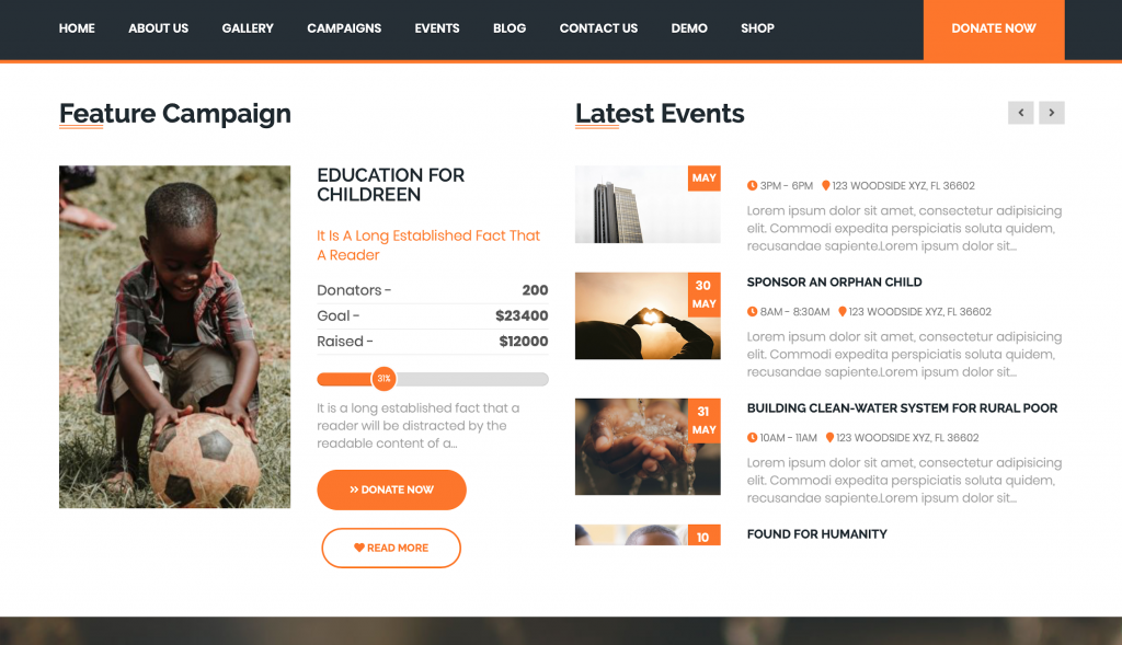 What I particularly like about this theme is the way it makes donation experience more personal. When you see an actual person who will benefit from your donation, you will be more willing to participate.