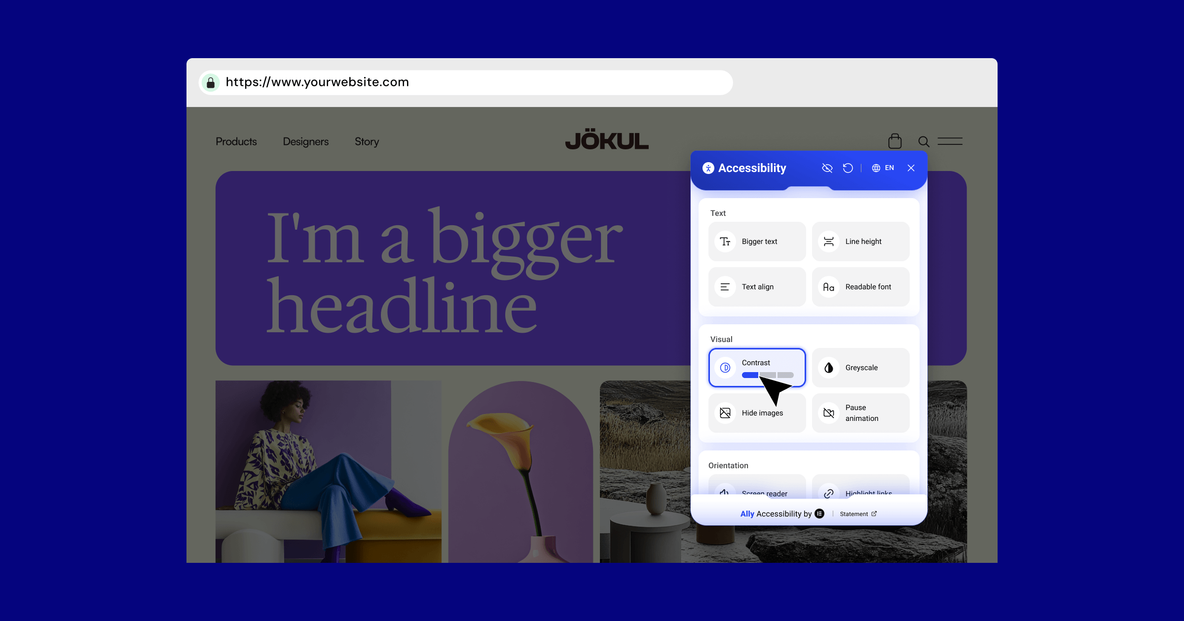 The new Ally Widget provides enhanced controls to help web creators improve website accessibility and create a more inclusive experience for all users. It allows you to manage accessibility features directly on your site, making key adjustments simple and intuitive.
