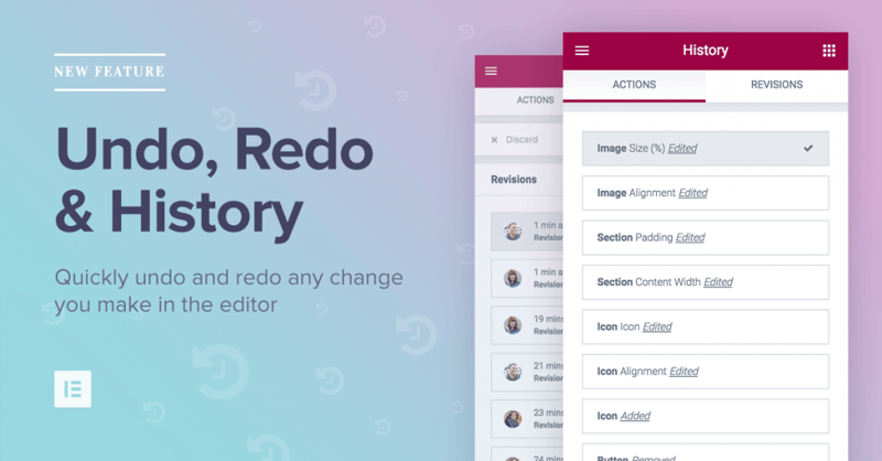 The newest feature release for Elementor (v1.7) adds redo / undo capabilities, letting you trace back your actions and design faster.