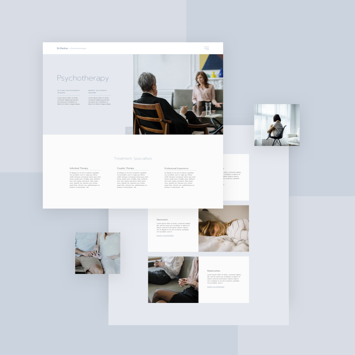 This month’s template kit was designed for psychology and mental health professionals looking to display their treatment offerings to potential clients. It’s minimalistic and focuses on the vibe that mental health professionals seek to convey: a professional, understated environment that evokes calm and serenity when clients encounter it.