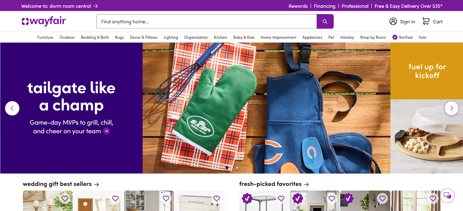 Wayfair is a massive online retailer of furniture and home goods. It works with thousands of suppliers to offer a vast selection of products. Selling on Wayfair gives brands access to a huge customer base actively shopping for home items.