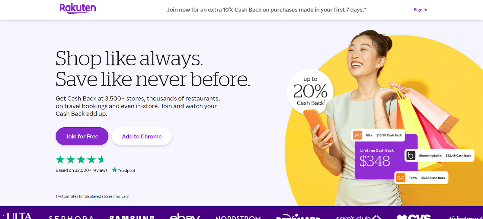 Rakuten is a major Japanese eCommerce company that operates a global marketplace. It offers a “super points” loyalty program that incentivizes repeat purchases, making it a powerful platform in the Asian market and beyond.