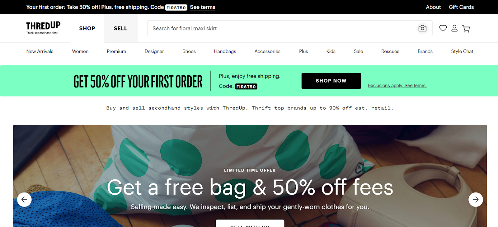 ThredUP is one of the largest online consignment and thrift stores. Unlike other platforms, sellers send their items to ThredUP, which then photographs, lists, and ships the products for them.
