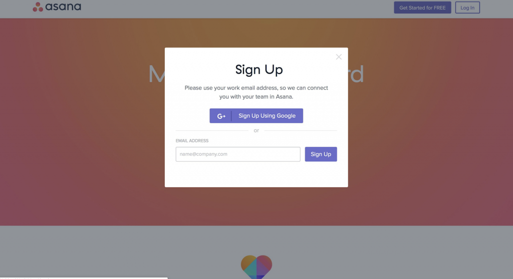 Asana accounts are free, and the sign-up process is simple, swift and straightforward.