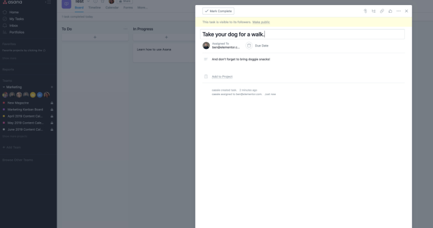 The hierarchy concept has projects broken down into tasks, with teams or team leaders overseeing the projects within the company or workspace (all users are connected through the business’ shared email domain). Portfolios are a recent addition to the hierarchy, allowing users to group several related projects together.