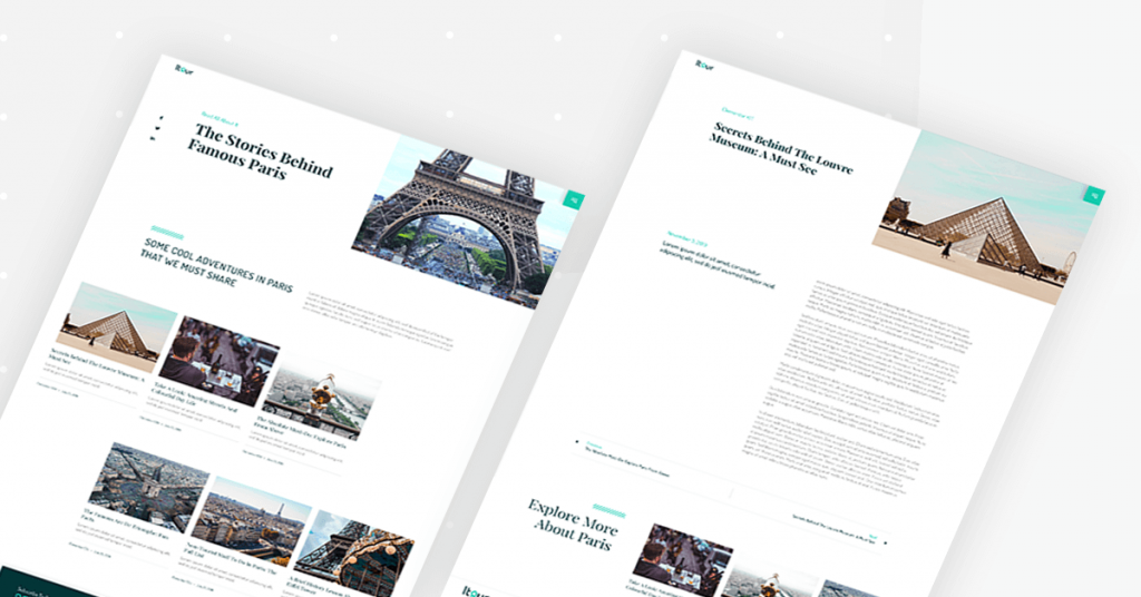 If you are looking for blog design inspiration, maybe our travel kit can be of service. The main blog page includes a classic blog design, with two different post layouts. The single post contains the main feature image positioned next to the title, a main block for the content, and related posts at the bottom.