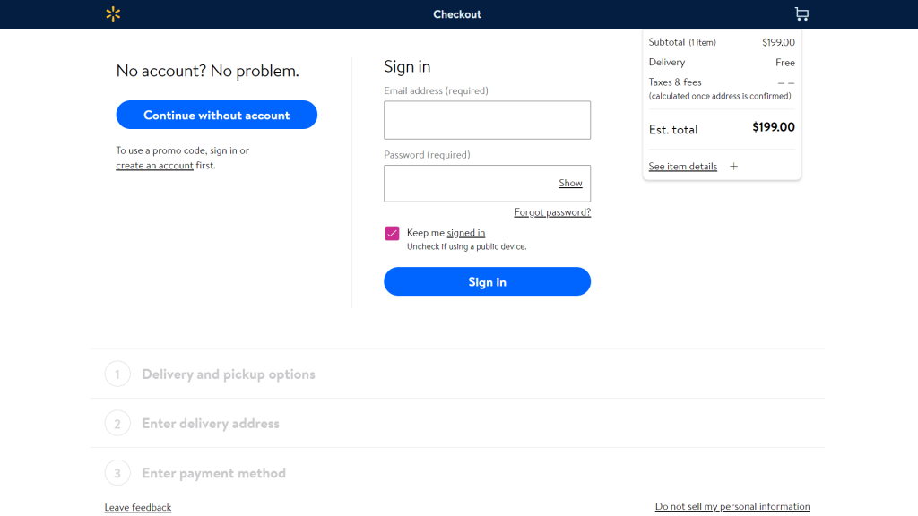 Ideally, you don’t want to display more than six or seven input fields at a time on each page, as too many elements can increase the perceived complexity of the form. Another option is to use the accordion-style form that you can find on sites like Walmart.com: