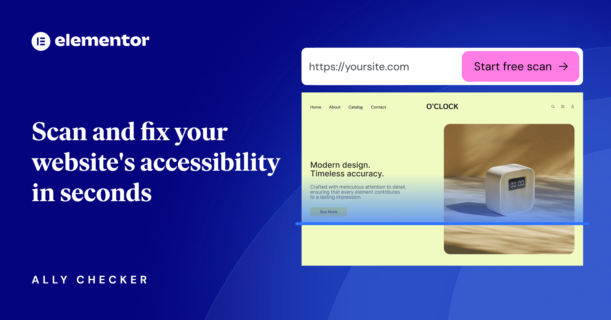 Need a contact form? Install a form plugin or use Elementor Pro’s Form Builder. Need to ensure your site is accessible? Install Ally by Elementor, which scans your site for accessibility violations and helps you fix them, ensuring inclusivity for all users.
