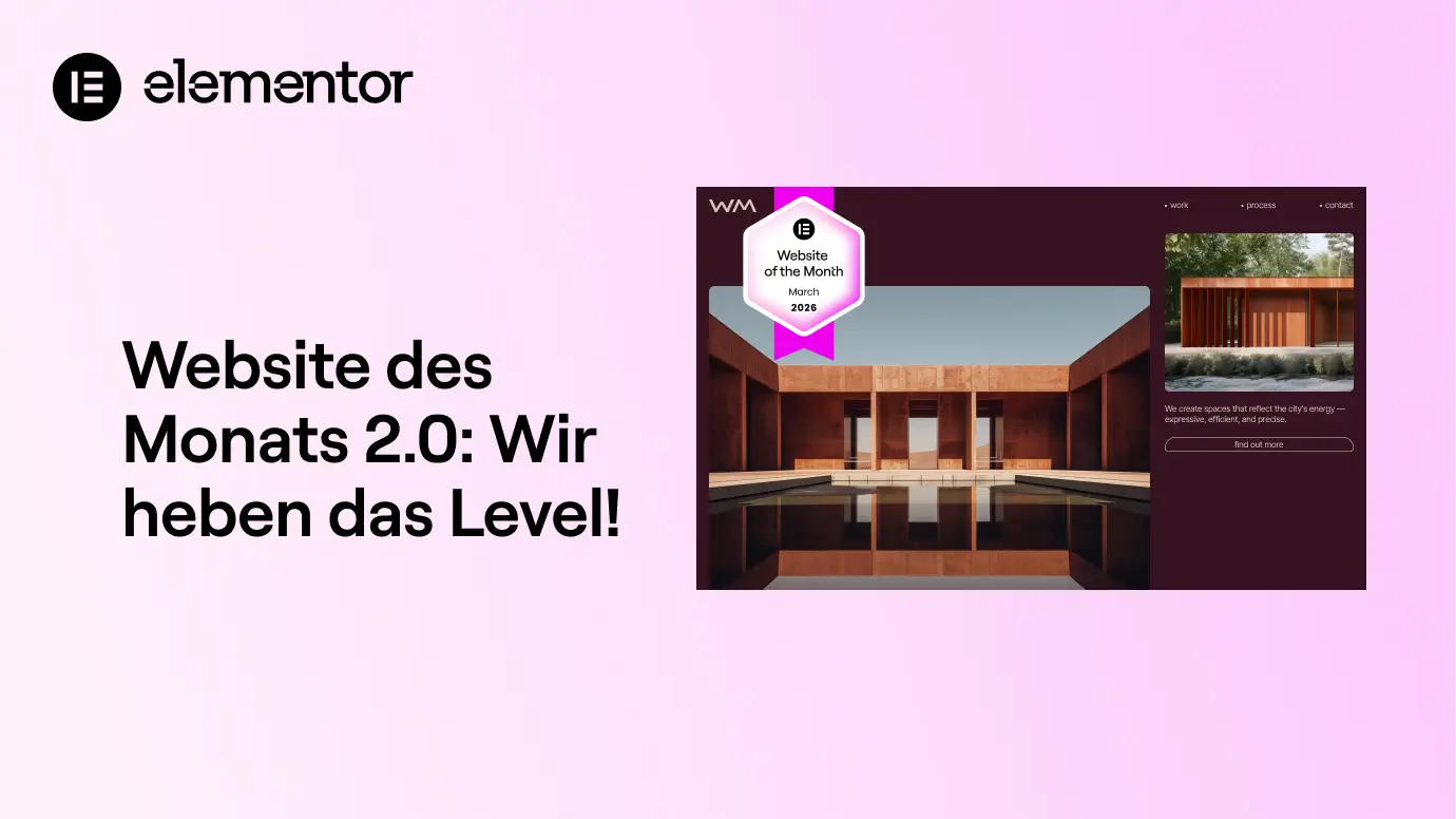 Zeig uns, was mit Elementor möglich ist — von smarten Microinteractions bis zu messbar besseren Conversion-Flows. Reiche dein Projekt ein und werde Website des Monats!