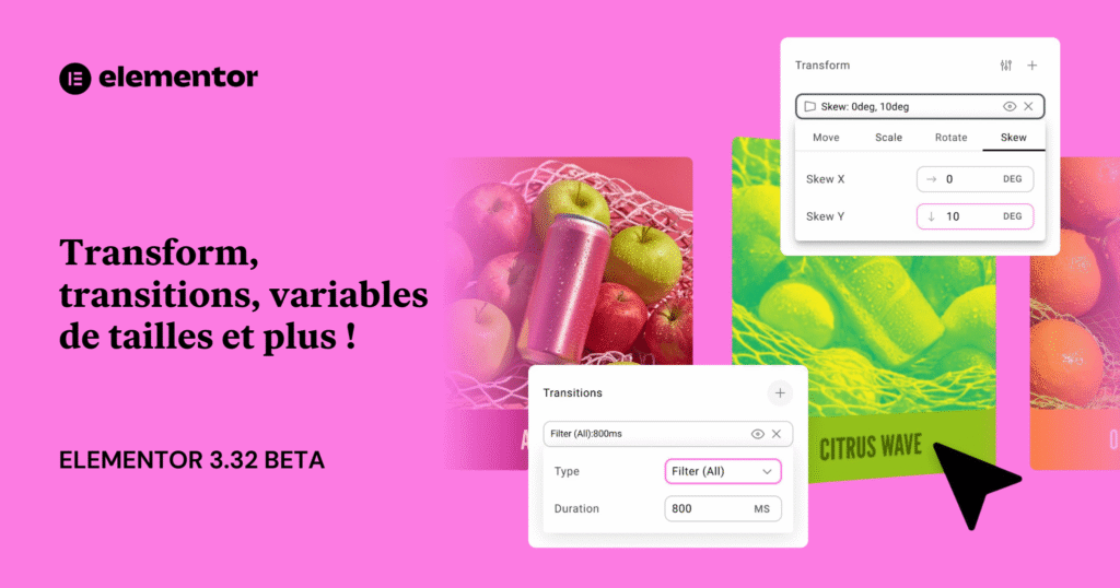 Présentation d’Elementor 3.32 : Transitions, Transform, Variables de taille et plus encore
