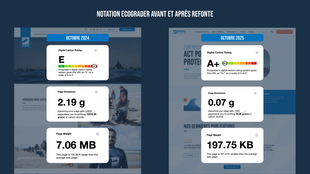 Et l’éco-conception ne s’est pas arrêtée au code : les illustrations ont été pensées légères, les visuels épurés, les animations mesurées. Même du côté de Surfrider, les pratiques internes ont évolué vers plus de sobriété numérique.