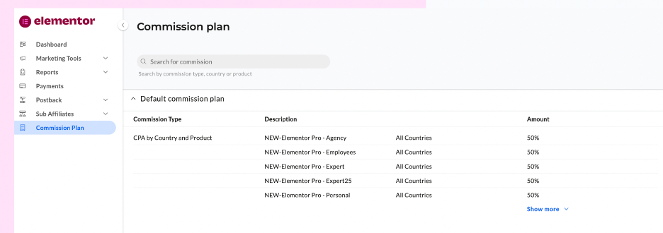 כדי לבדוק את דרגת העמלה שלכם, עברו אל Commission Plan וצפו בדרגה הנוכחית שלכם ובפרטי העמלה המופיעים בצד ימין.