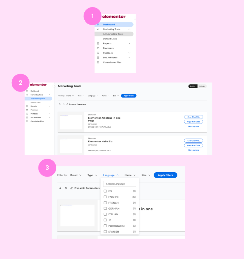 נווטו בתפריט הצד ל־Marketing Tools, בחרו All Marketing Tools