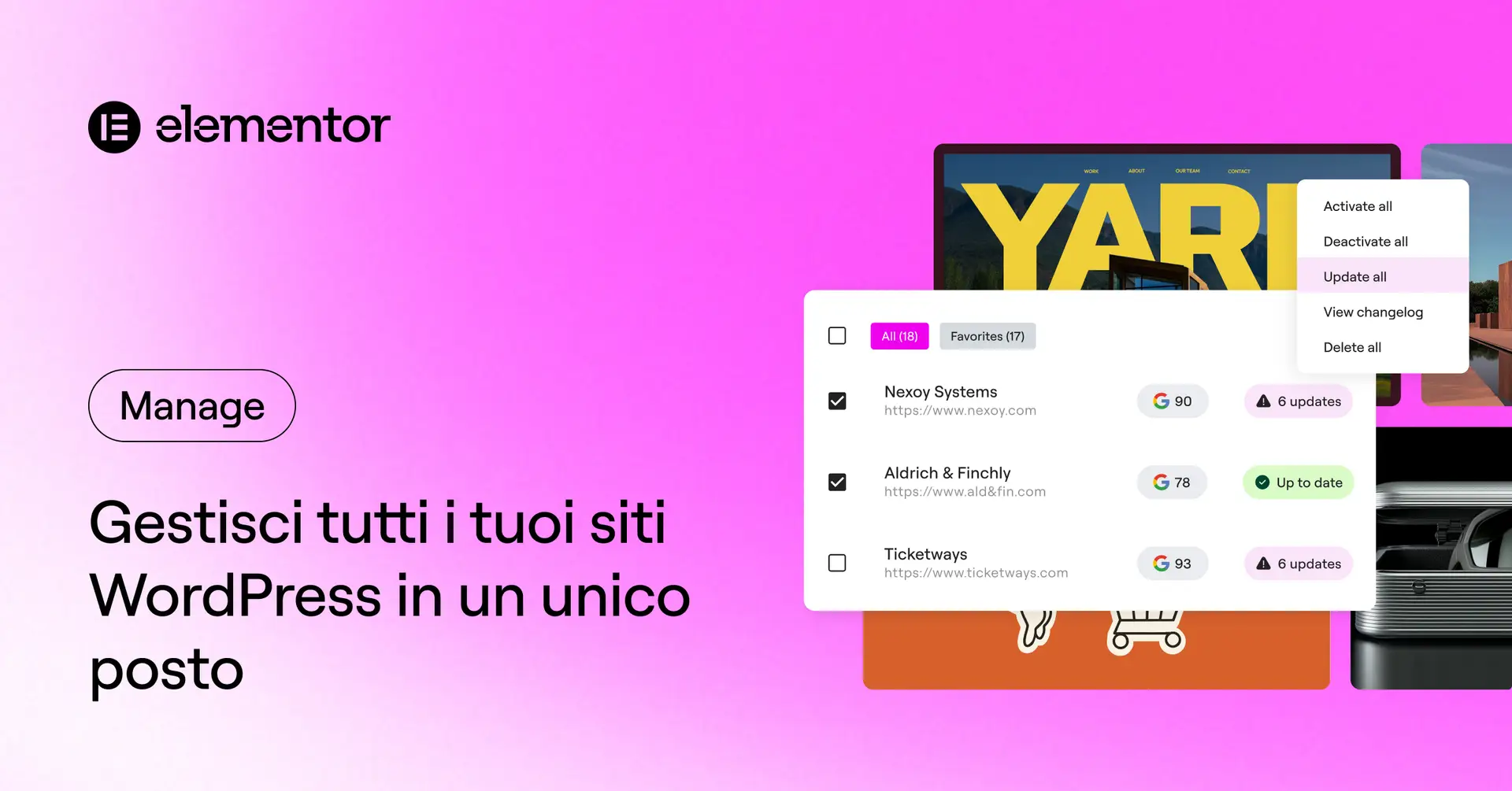 Gestisci tutti i tuoi siti WordPress da un'unica piattaforma. Monitora le prestazioni, esegui gli aggiornamenti, individua i rischi per la sicurezza e ottimizza i tuoi...