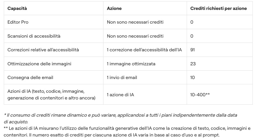 Tieni presente che ogni azione consuma un numero di crediti variabile.
