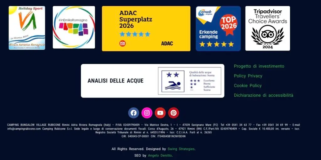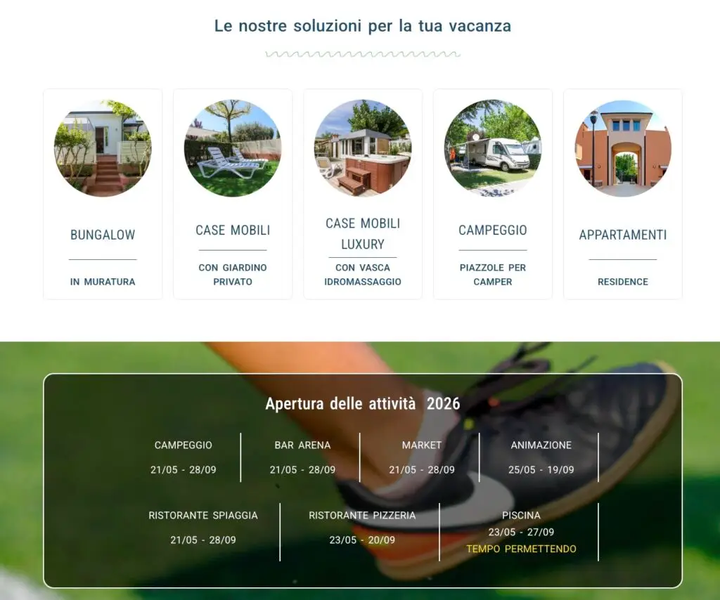 Presentare un Campeggio Villaggio della riviera romagnola, con attenzione a UX/UI e SEO, con un modulo per calcolare il preventivo intuitivo e immediato da usare.