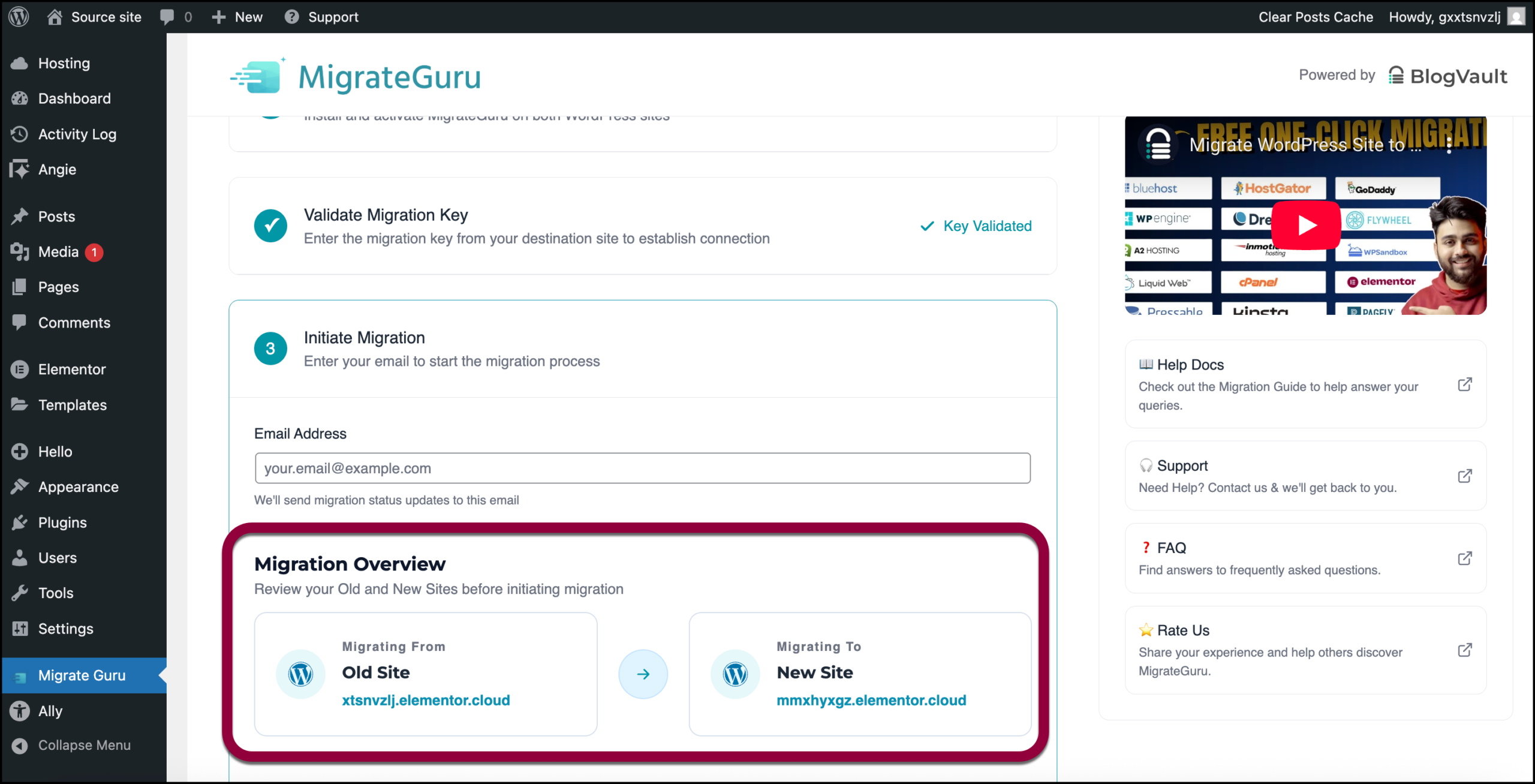 Migrate your site to an Elementor Host site you created