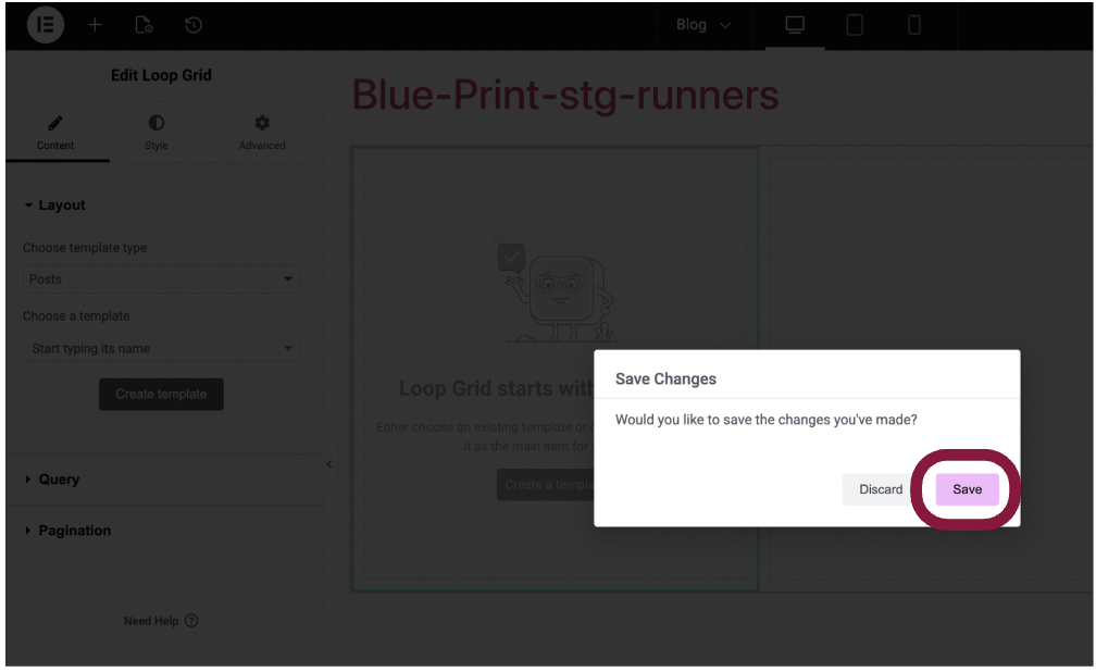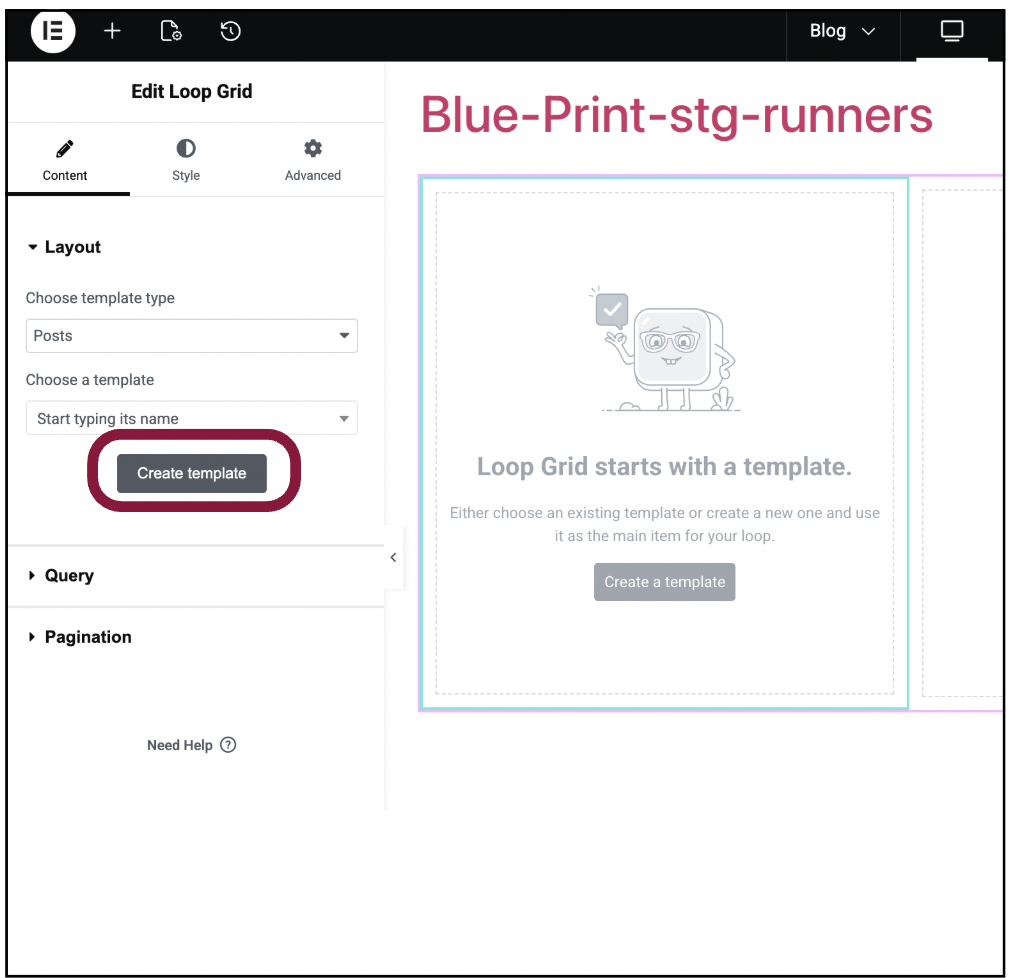 - Add a Loop Grid widget to the canvas. For more information, see Build a loop grid. NoteYou can use the Archive Posts widget or Posts widget to create a blog page, but we’ll use the Loop Grid widget as it offers more flexibility.