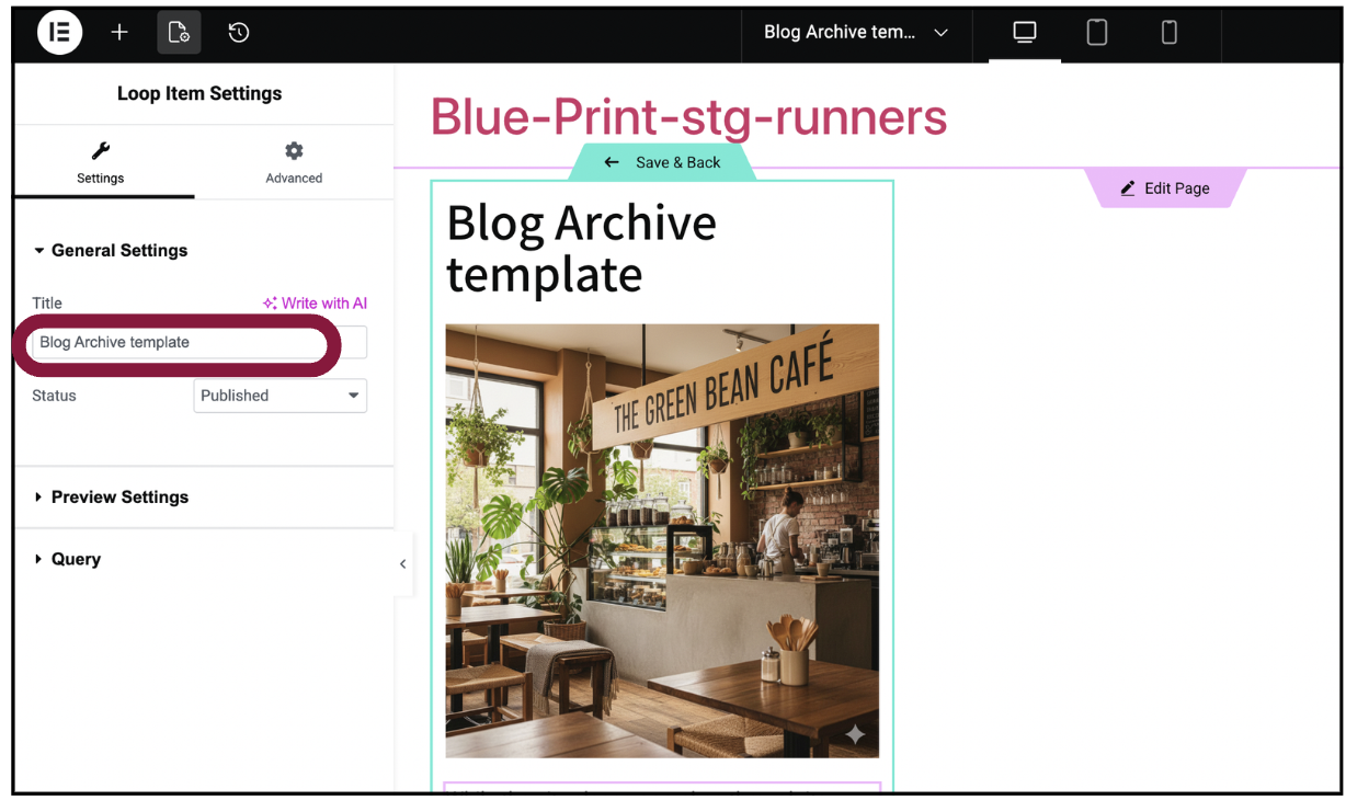 For this example, our blog page will display the blog posts title, featured image and excerpt.