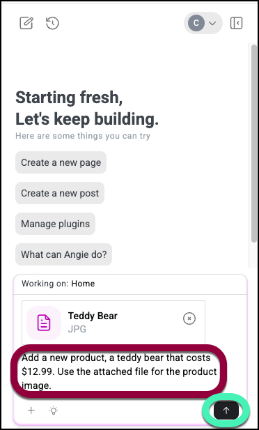 As an AI tool, Angie provides context-sensitive results. Therefore the results you get will almost certainly differ from the examples in this article, even if you enter the same prompts.