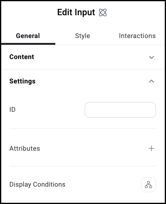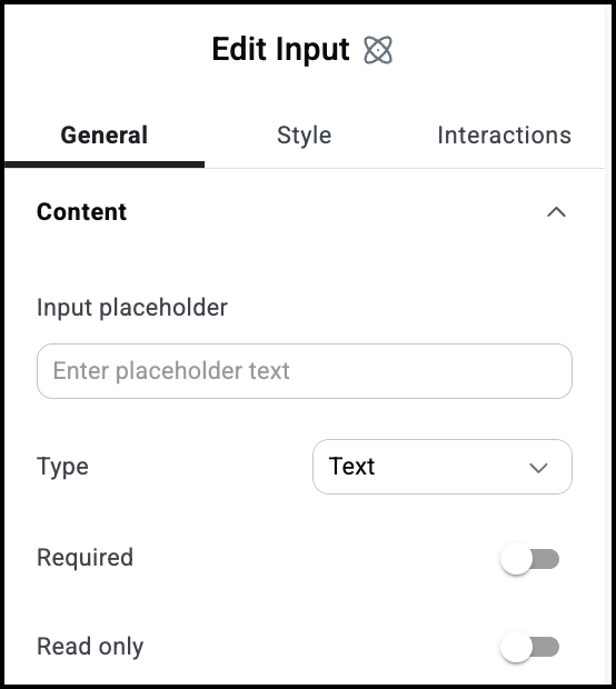 The Input atom is where visitors will add the information they’re submitting.Â
