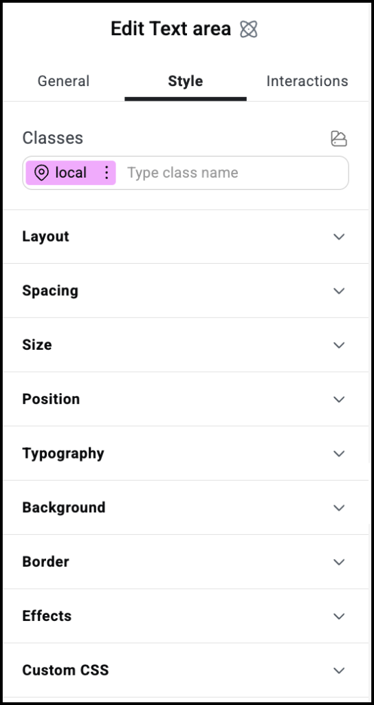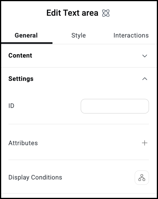 Settings for the Text area atom