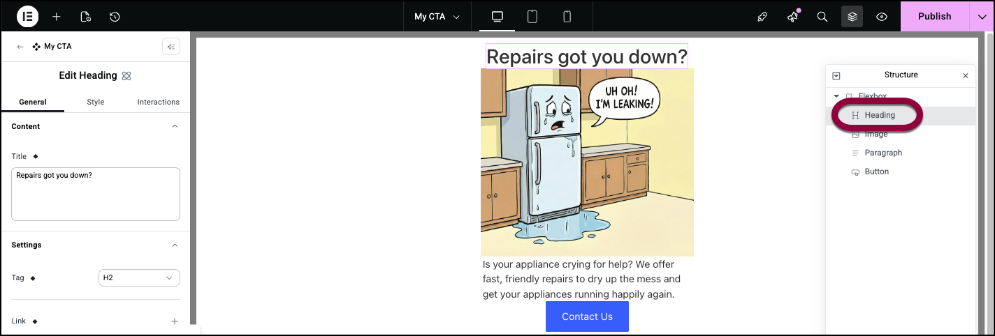 In this case, we’ll choose to customize the Heading element.