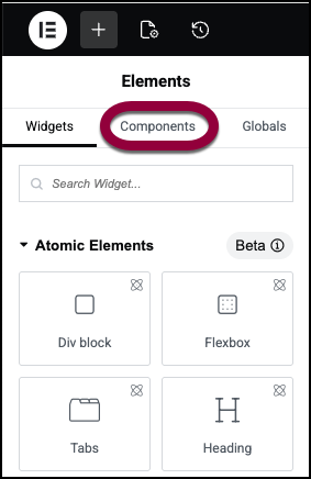 • Click the Components tab in the Elements panel.