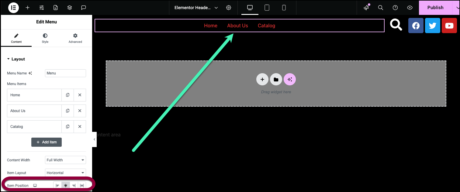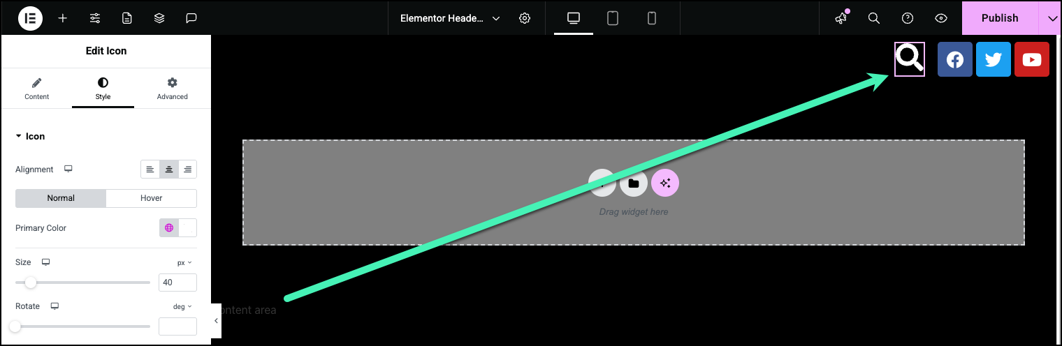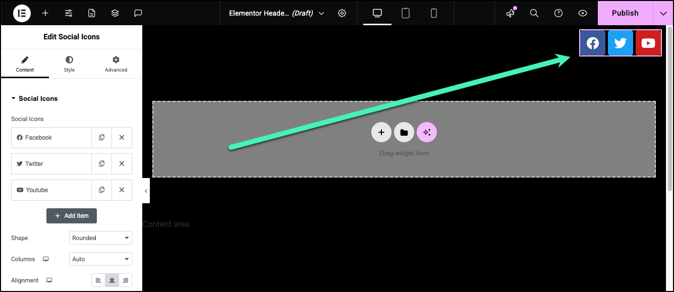 - Drag the Social icons widget to the container. Learn more about the Social icons widget.Â