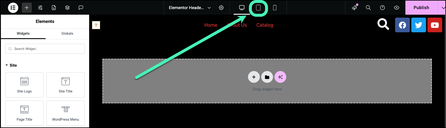 Now let’s check to see how the header will look on other screen sizes. - Click the tablet icon.