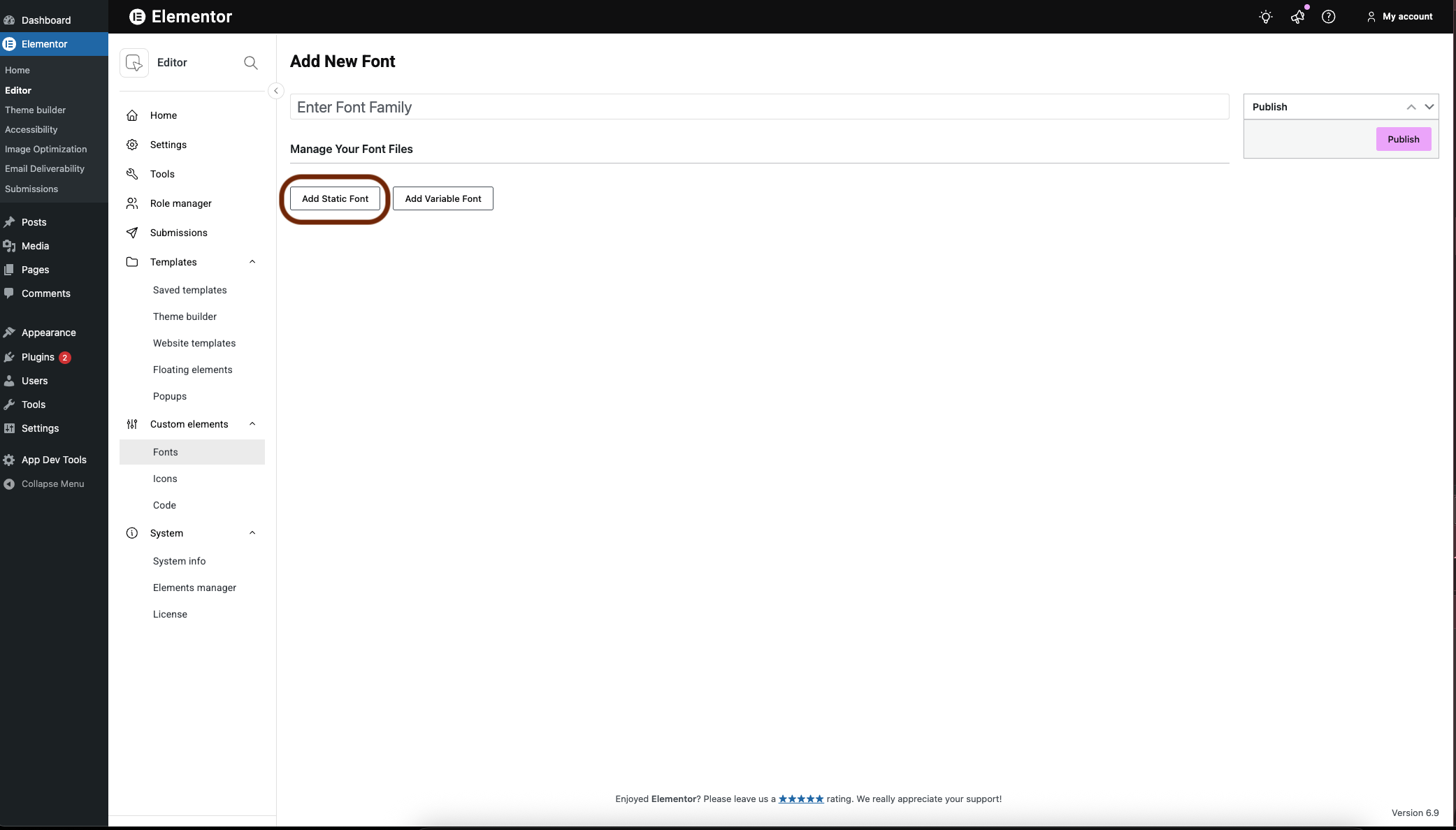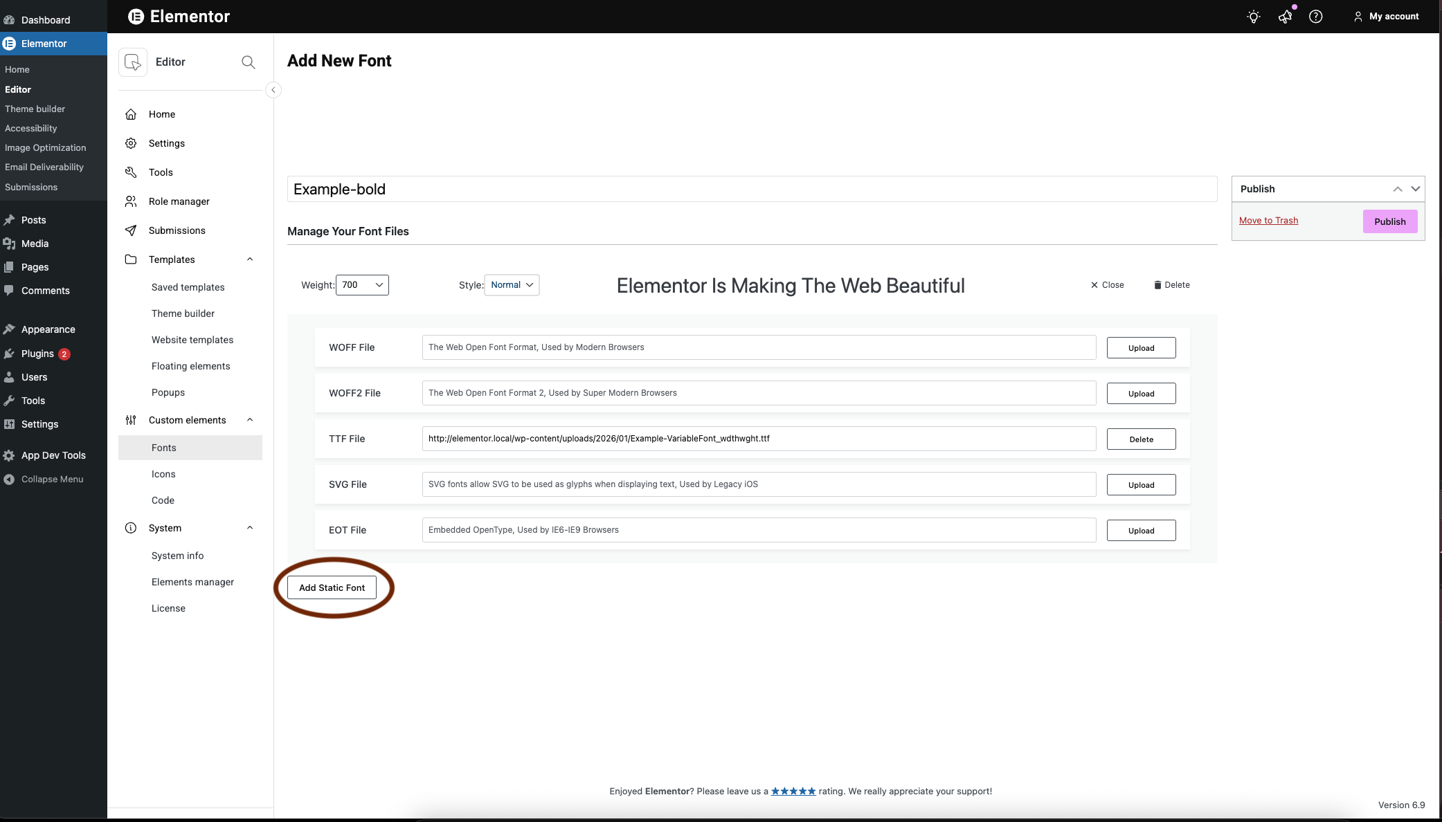 If you need more than the over 800 Google fonts that come with Elementor, you can add custom fonts to your website.