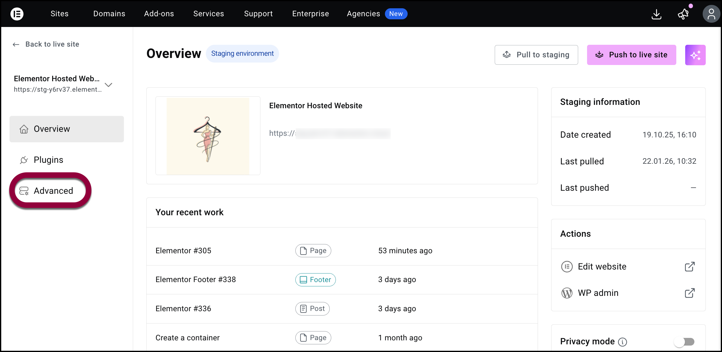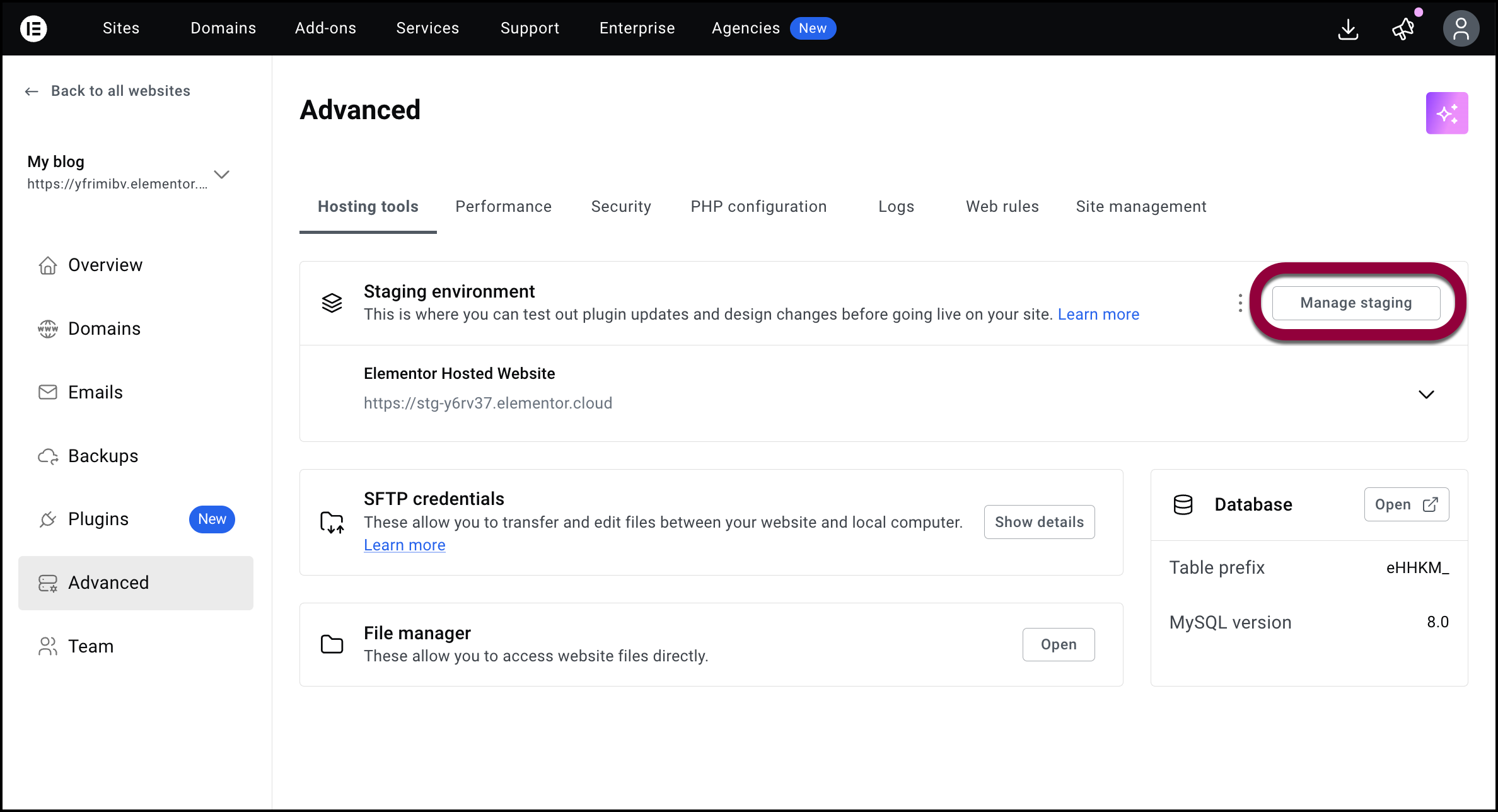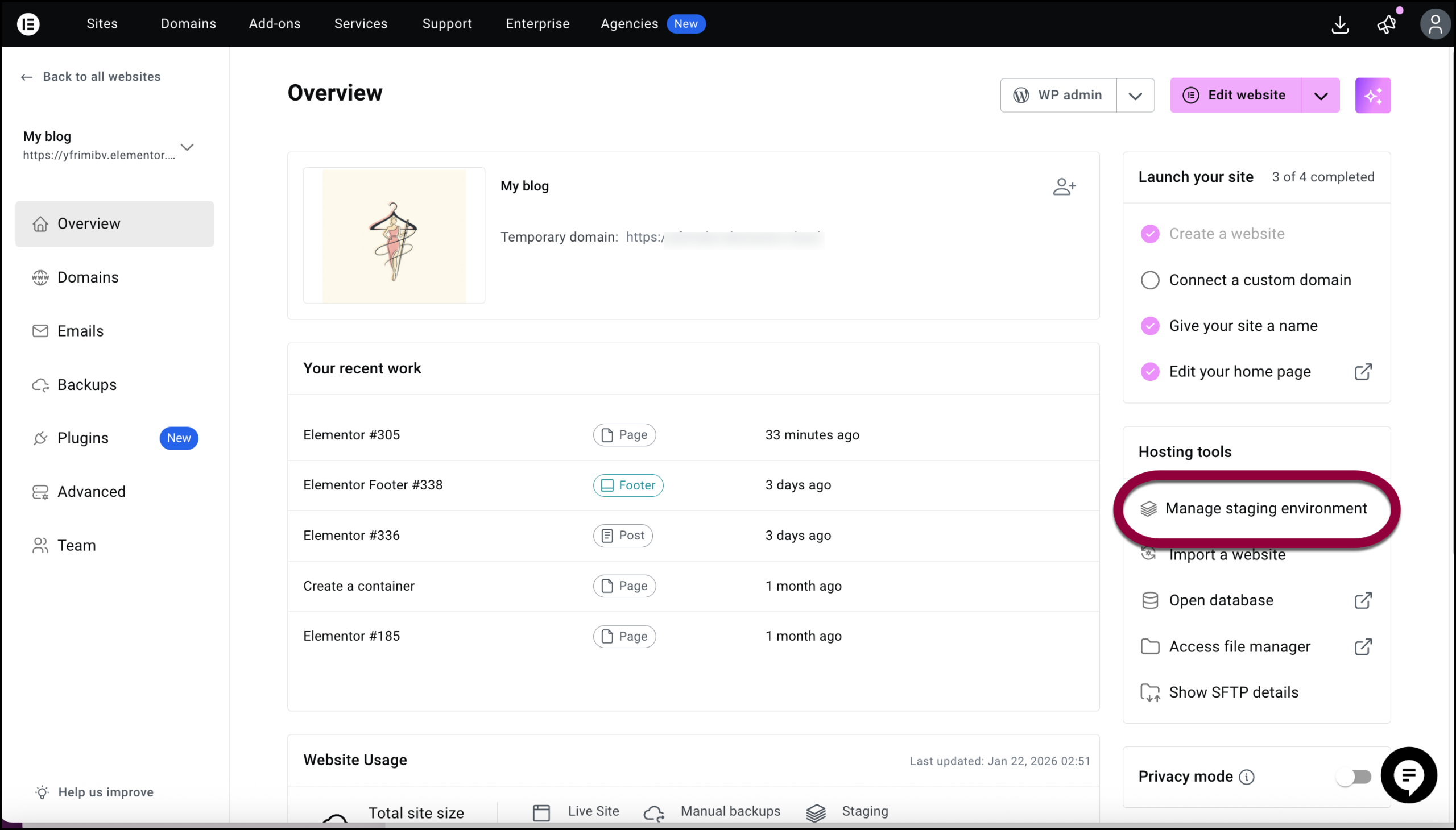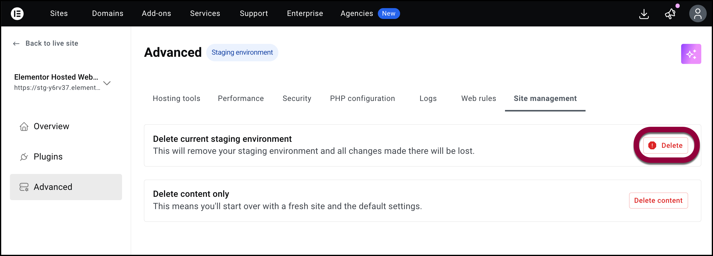 At some point you may decide to delete your staging site – generally this is when you want to work on a clean version of your staging site.